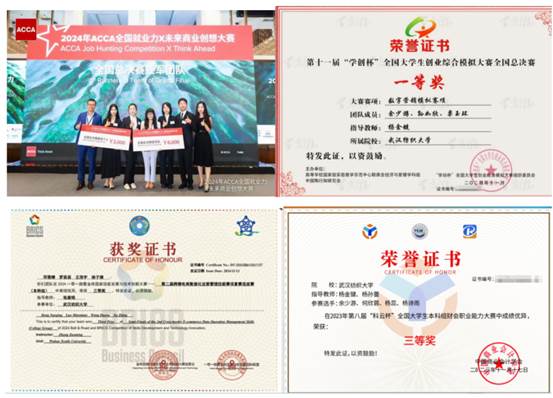 学生多次在ACCA JHC全国就业力大比拼、“东方财富杯”全国大学生金融精英挑战赛、湖北省“创青春·汇得行”大学生创业比赛等斩获国家级、省级等多项奖项。