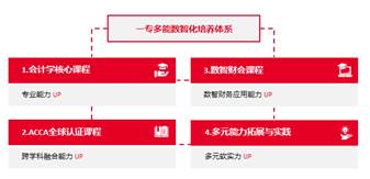 ACCA(英国特许公认会计师公会)自1904年成立以来,其与时俱进的课程体系被联合国作为全球会计教科书蓝本。会计学专业(ACCA方向)深度对标国家数智化发展战略,聚焦人工智能与大数据广泛应用下财会专业学生的核心素养与技能,以当前全球大型企事业单位用人需求为导向,搭建起“会计学核心课程筑基、ACCA全球认证课程拓界、数智财会课程赋能、多元能力拓展与实践”的一专多能数智化培养体系,课程内容聚焦会计、金融、财务管理、智能财务应用等学科交叉领域,旨在培养精通智能财务工具与国际化财经语言、系统掌握商业逻辑与全球视野的复合型数智财会人才。