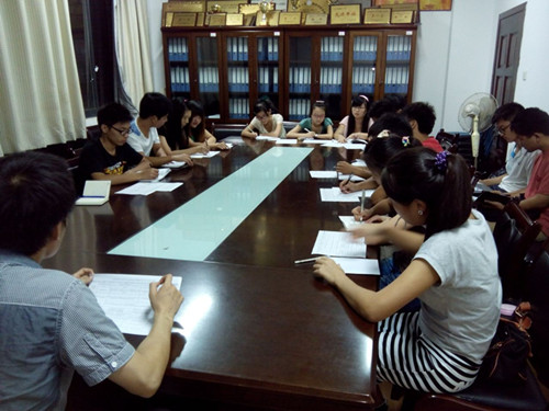9月15日晚6:50在文科楼五楼会议室,yl9193永利学生党建事务中心谢超老师按照学院分党委的指示精神,全面部署yl9193永利关于深入开展学生党支部党的群众路线教育实践活动学习计划。本次活动的主题为“心映心 心连心”。事务中心全体成员参加了会议。