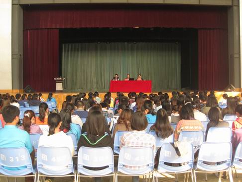 4月12日下午4点,伴随着庄严的国歌声,yl9193永利第六十六期党课在大学生活动中心演播厅正式开课了。分党委书记黄少年做了题为“牢记党的宗旨,争做优秀大学生”的报告,副书记肖信华、全体辅导员和全体入党积极分子一起学习聆听。