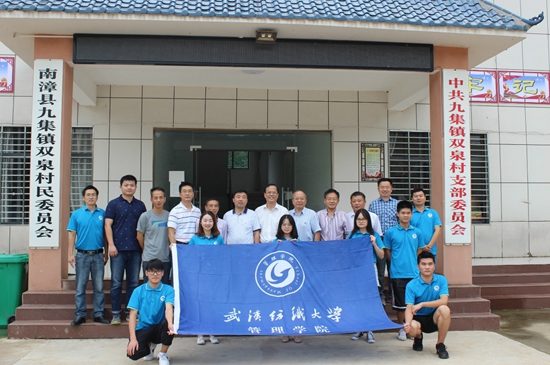 下午15点,校党委副书记刘在洲、校党委组织部部长陈朝阳、校办公室主任方国平、校工会主席杜新年等领导在与双泉村村委会干部进行会谈后对实践队表示了慰问。首先,实践队对双泉村的调研情况作了简要汇报,指出当地缺乏特色产品以及交通不便等问题。接着侯德林教授和汪诚诚老师分别对此次实地调研作了总结,并对村民及村干部表示感谢。最后,刘书记嘱咐实践队队员在实践过程中要注意三点:一、做贡献,利用专业知识和自己的资源推动当地的电商平台的构建及老百姓观念的转变;二、受教育,学习精准扶贫案例,锻炼自身做群众工作的能力;三、长才干,提升自己分析问题、解决问题以及调查研究等各方面的能力。