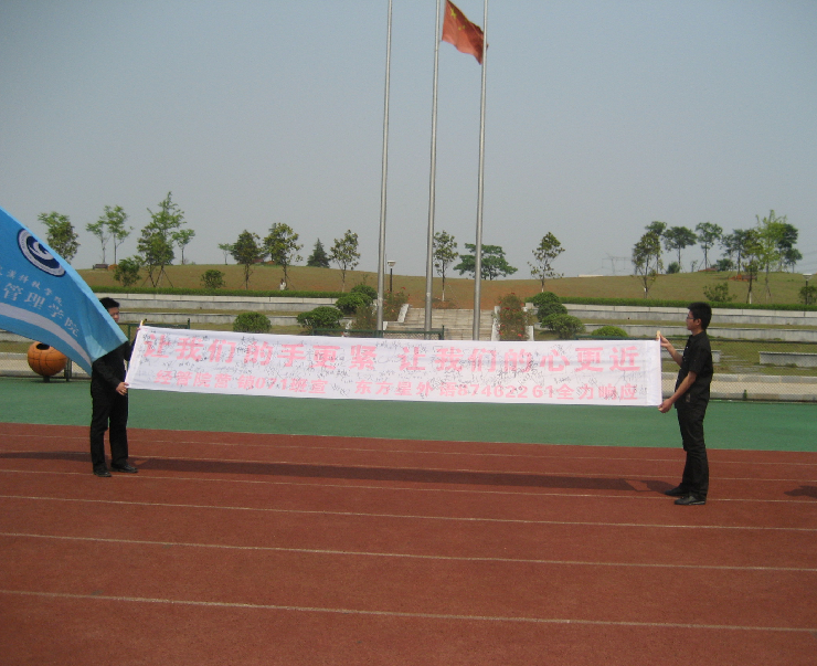 5月19日中午14:28分,经济yl9193永利部分学生集中在体育场进行默哀三分钟,营销071班熊杰同学作为代表发出了倡议,号召全体同学与灾区人民手牵手、心连心,面对灾难共渡难关、百折不挠、自强不息。随后,同学们进行了签名活动,截至目前,经济yl9193永利全体学生已经募捐17020元,为灾区、为同胞、为民族献出自己的绵薄之力。