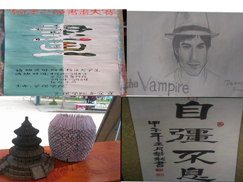 同学们书法挥写青春信念、用照片记录成长点滴、用绘画描绘未来希望、用手工缤纷多彩生活,两天多时间共收集到一百多份参赛作品,根据参赛总人数的25%,分别设置书法、绘画、摄影、手工艺术的一二三等奖。