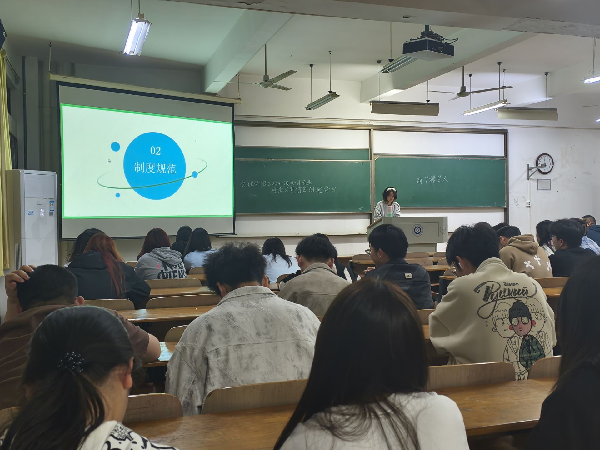 会上,学院布置了安全文明宿舍检查工作,全面开展宿舍卫生清理和安全隐患排查,引导学生制定宿舍生活公约,强调了宿舍文化内涵养成教育,9A118王思雨、1A626刘源及财管12402班生活委员向昕悦作为优秀宿舍代表进行了经验分享,营造创优争先的良好宿舍文化环境。