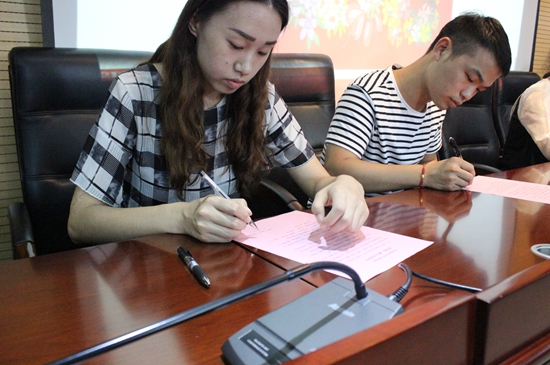 (毕业生代表上台签署《廉洁从业承诺书》)