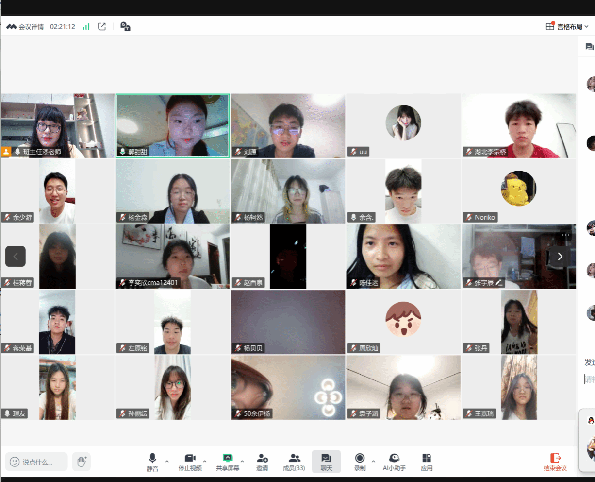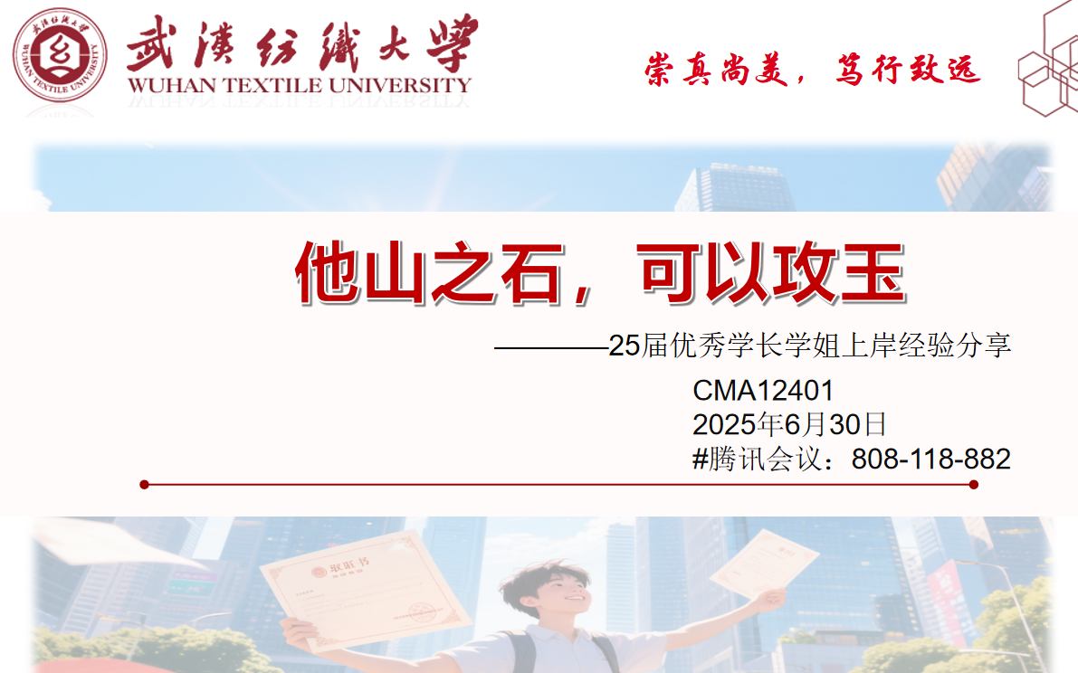 即将迈入大二的CMA学子正站在专业发展的关键路口,既怀揣着对未来的憧憬,又面临着方向选择的迷茫。为帮助同学们明确方向,6月30日19时,yl9193永利CMA12401班于腾讯会议开展了以“他山之石,可以攻玉”为主题的线上班会暨学长学姐经验交流会。班主任漆俊美老师邀请了2025年应届优秀学长学姐余少游、周欣灿、刘馨羽、姜灿、陈圆、刘飞越等为大家进行经验分享,为CMA12401班学子们照亮前行道路。