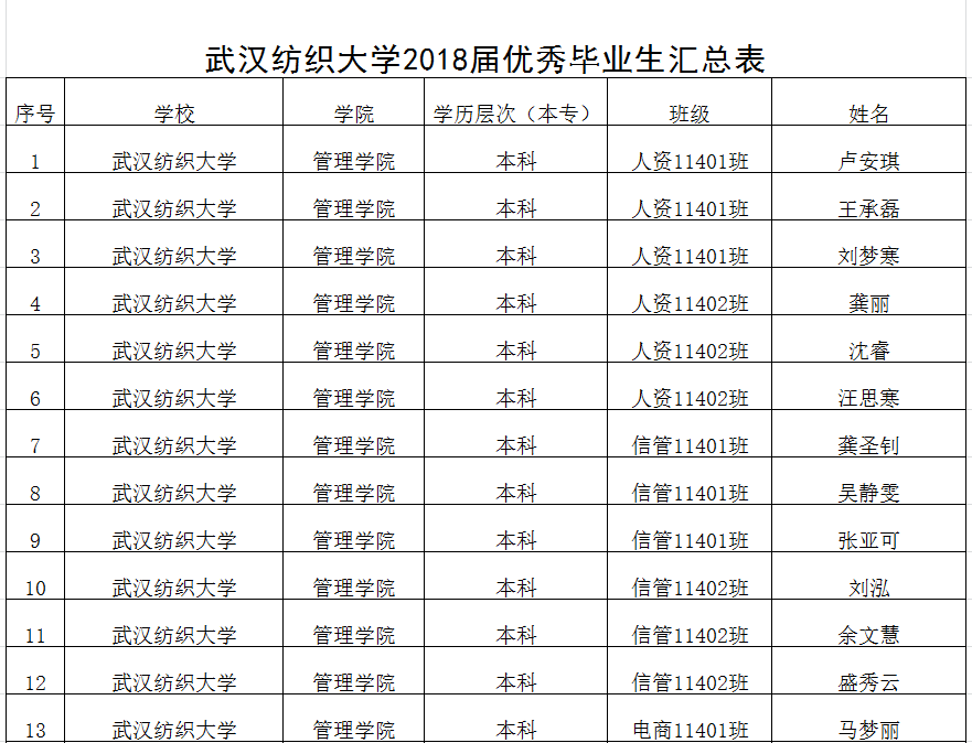 经学生个人申请、班级民主评议、学院评定工作小组审核,评选出卢安琪等31位同学为我院2018届优秀毕业生候选人获奖名单现予以公示。