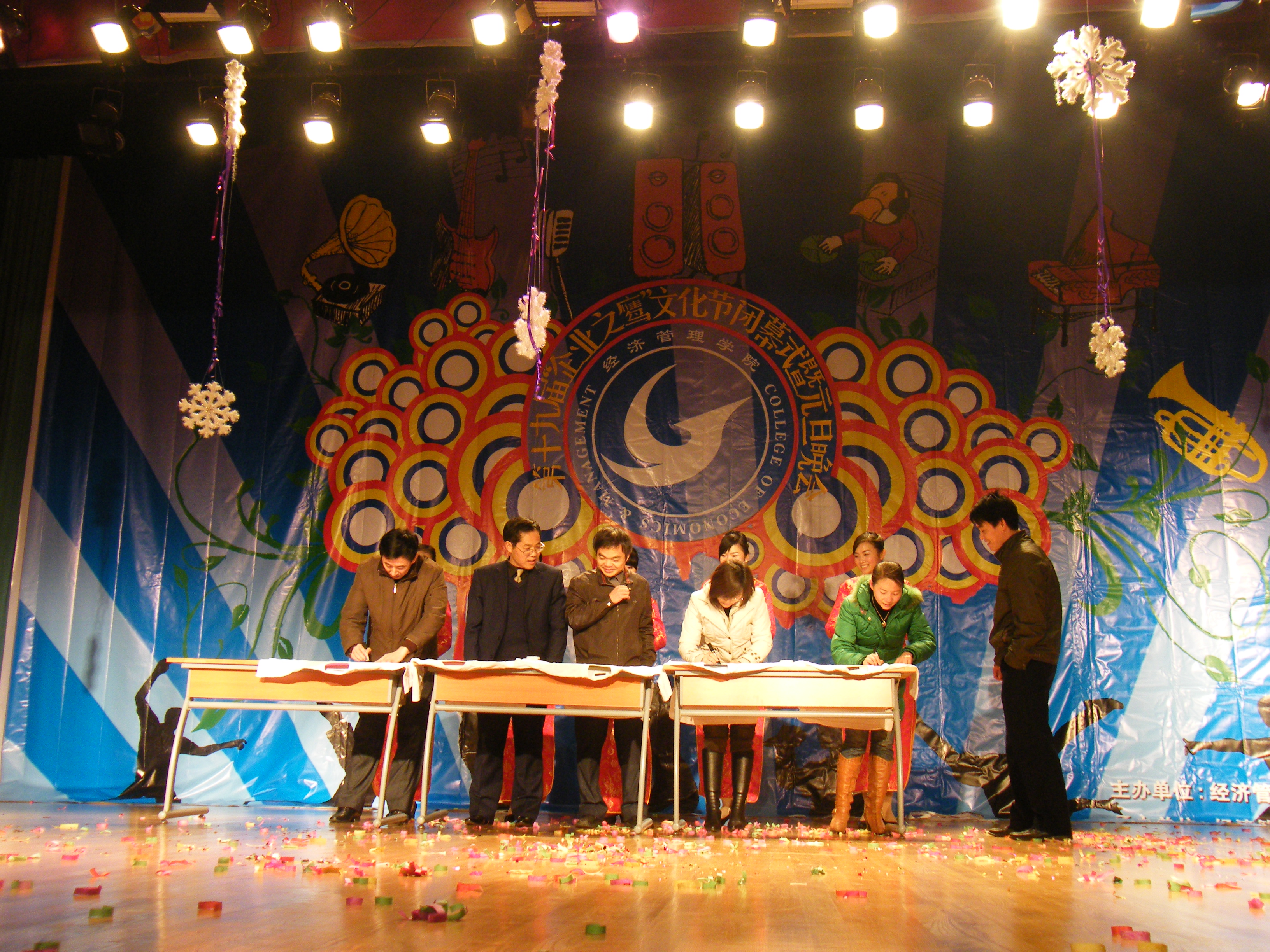 夏火松院长代表学院在会上致辞,他说,经济yl9193永利今年取得了一些教学科研的标志性成果,如信息管理与信息系统被评为湖北省高等学校本科品牌专业,“物流管理与信息系统教学团队”被评为“湖北省高等学校优秀教学团队” ,《物流管理信息系统》被评为国家精品课程,《财务管理》被评为湖北省高等学校精品课程,现在学院正在为“申博”而努力奋斗。夏院长衷心祝愿全体师生新年愉快、万事如意,祝愿“企业之鹰”文化节越办越好,祝愿经济yl9193永利的明天更美好。