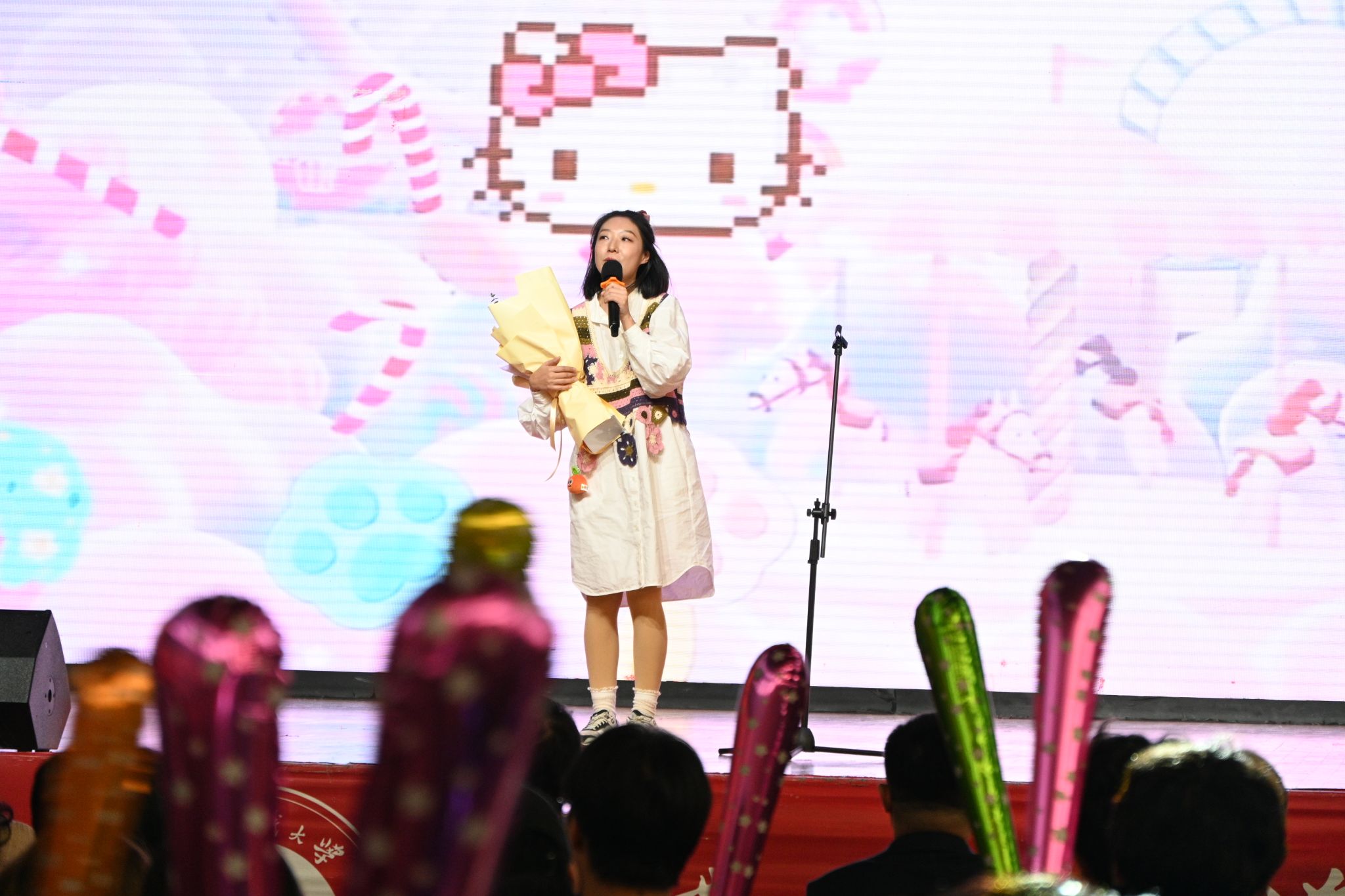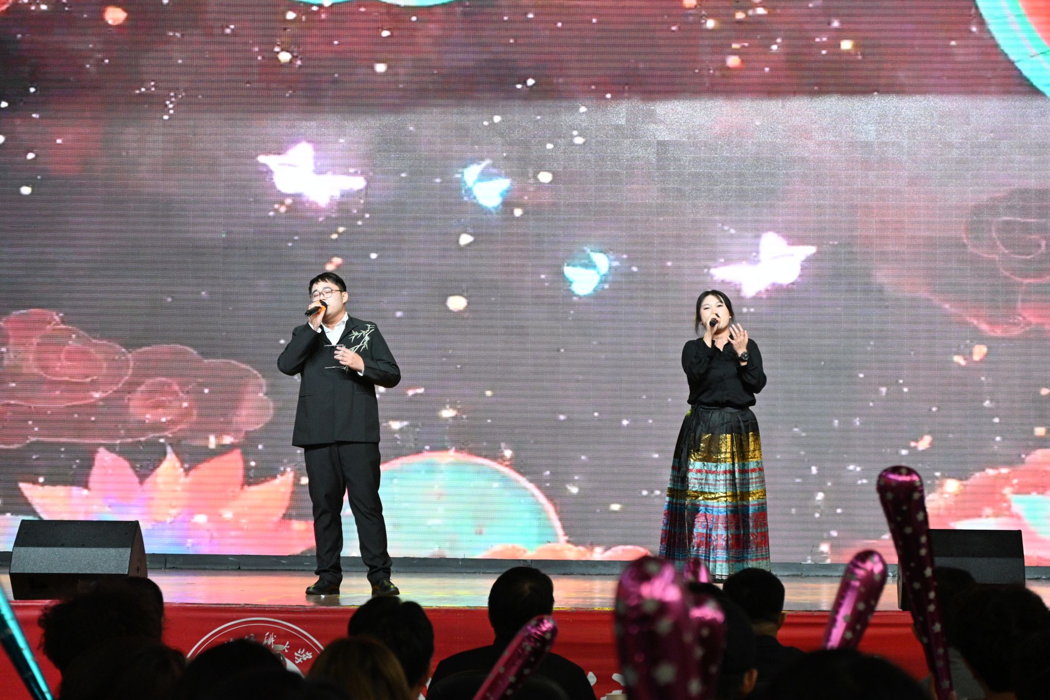 教师们褪去讲台的严谨,化身舞台上的“追光者”。黄玉菁老师带来独唱《New Boy》,温柔而富有力量的歌声缓缓流淌,传递出对新生力量的期许,也让台下学子感受到师长的亲切与温暖,不少学生举起手机记录这一温馨时刻。