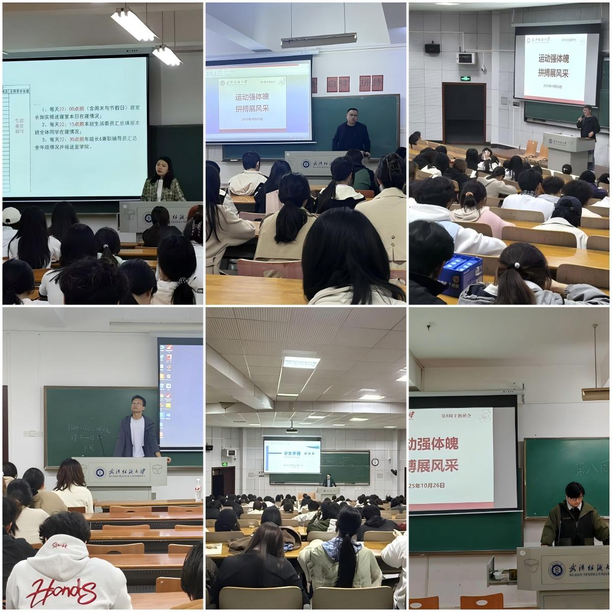 各班级带领学生深入学习习近平总书记关于体育的重要论述,从“健康第一”的教育理念到体育对民族未来的深远意义,从“以体育促包容”的文明交流视角到“国运兴则体育兴”的战略认知,学生深刻理解体育在个人成长、国家发展中的重要价值,进一步树立文化学习与体育锻炼协调发展的理念。各班结合我校体育活动开展情况介绍了运动会、太极拳比赛、健身操比赛等体育项目,鼓励同学们积极参与校园体育活动,在运动中增强团队协作能力。同时普及了运动安全知识,提醒学生关注身体状况、合理控制运动负荷,科学规避运动伤害。大四学生结合毕业班特点,继续采用一对一谈话方式开展晚点名。