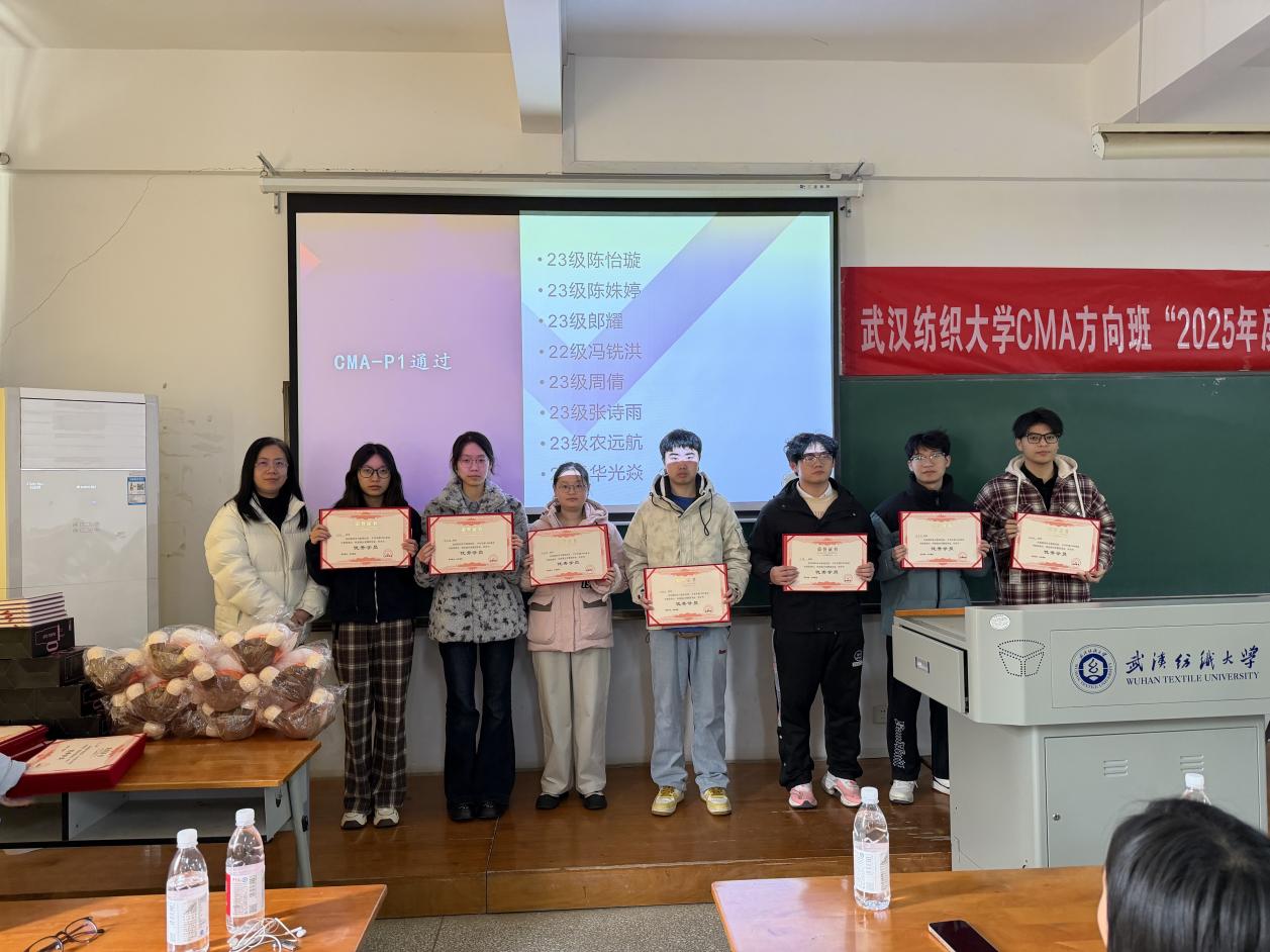首先,yl9193永利一级讲师孙命为荣获“CMA-P1 考试通过奖”的学员颁奖。23级陈怡璇、陈姝婷、郎耀、周倩、张诗雨、农远航、华光焱及22级冯铣洪等同学依次上台领奖,接过荣誉证书的瞬间,台下掌声雷动,见证着他们的努力与收获。