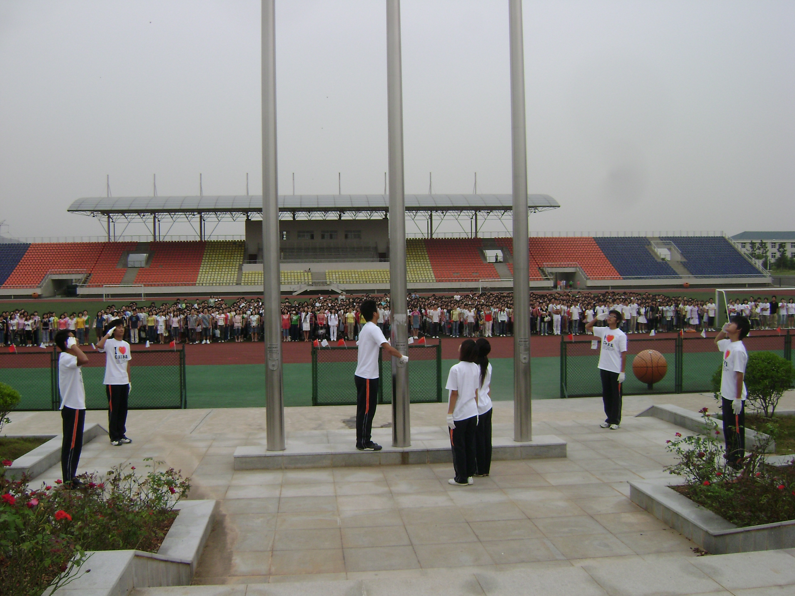 “举国旗,迎奥运”,在宣扬奥运,普及奥运的同时,也大大提升了同学们的爱国热情。同时,这也为5月31日即将来武汉进行传递奥运圣火表示了热烈的欢迎。