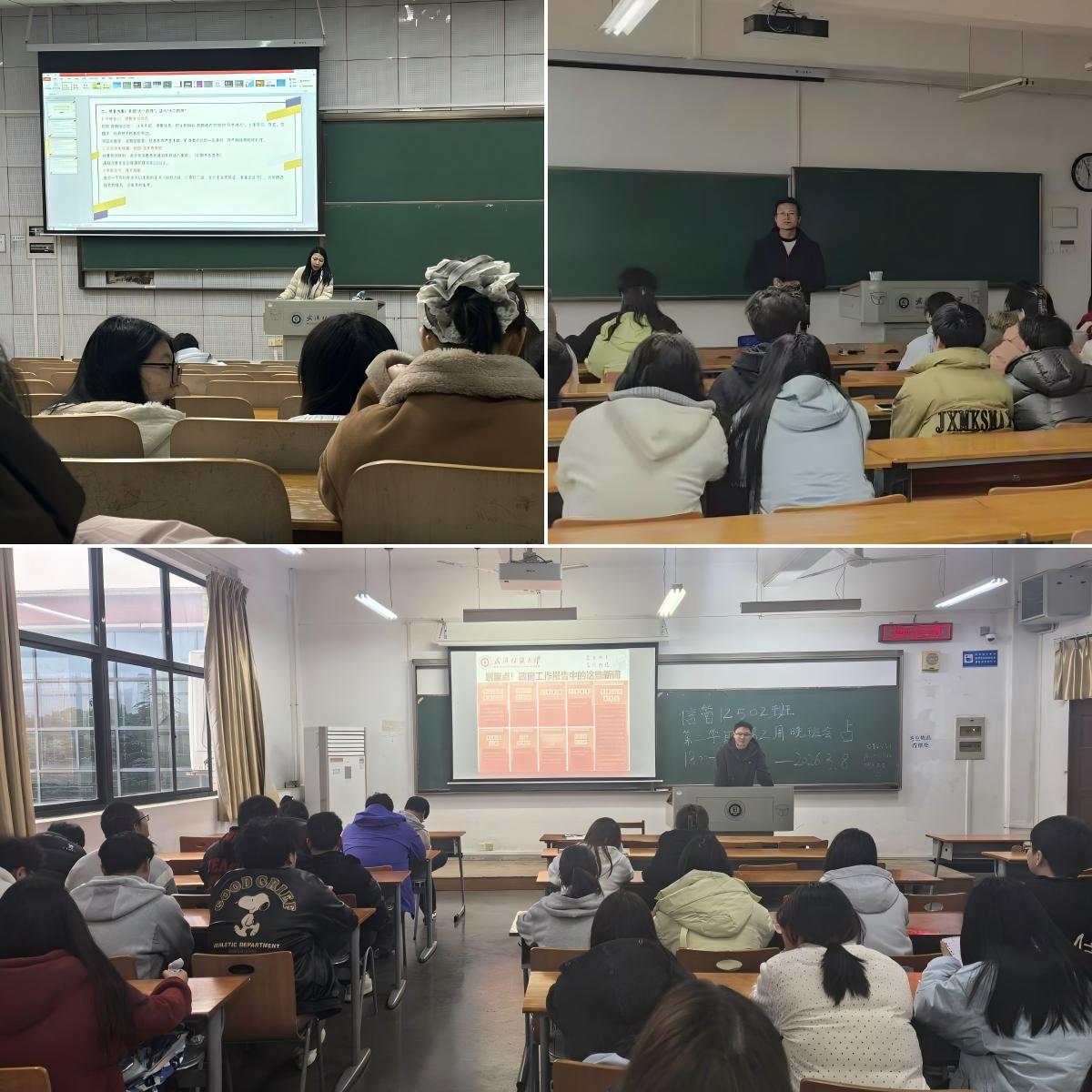 大三年级以年级大会的方式同步对考研、考公等热点发展方向展开职业规划指导,分析了近年来的招考形势与政策变化。针对少数同学“非名校不上”“非公务员不考”的心态,老师结合往届学长学姐的成功经验和失败教训,建议大家结合自身优势,合理选择发展方向,树立正确的就业观。