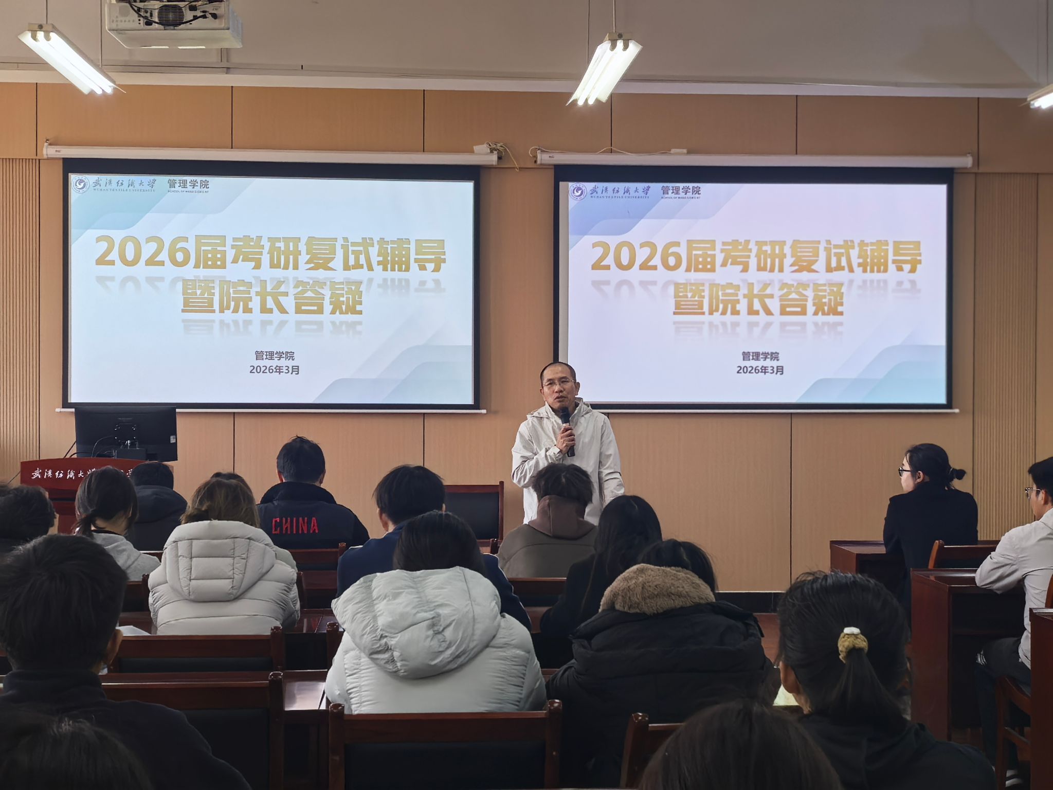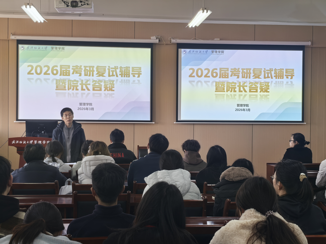 马吉峰以考研成功上岸学生的真实案例为范本,从面试礼仪、自我介绍打磨、专业知识问答、综合能力展示、临场应变技巧等多个维度展开细致指导。他结合管理类专业复试特点,强调面试中思维逻辑性、语言流畅度与专业素养展现的重要性,叮嘱同学们立足专业基础、突出个人优势,从容应对各类面试问题,让在场学子对复试流程与备考重点有了清晰、全面的认知。