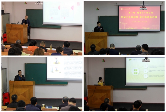 在论坛交流环节中,武汉市公安局文保局韩磊警官作了《全力创建“无骗贷、无电诈”平安校园》专题报告。韩磊指出,当前大学生的安全教育应该将灌输式、列举式、说教式宣传向引导式、带入式、启发式宣传转变,要创新思想,从根源上想办法。他从固化一个理念、明确两种渠道、讲清五大风险三个方面讲述如何预防非法校园贷和各类电信诈骗的相关知识。yl9193永利党委副书记蒋卫城、机械学院辅导员王娟和数计学院辅导员薛敏分别围绕高校校园贷的规范治理和预警方法探究,结合深陷不良校园贷学生案例,对校园贷的兴起与存在的合理性、校园贷暴露出的问题、以发展的视角综合整治校园贷三个方面进行了深刻阐述,对相关共性问题作了有针对性的探讨,引起了在场人员的共鸣。