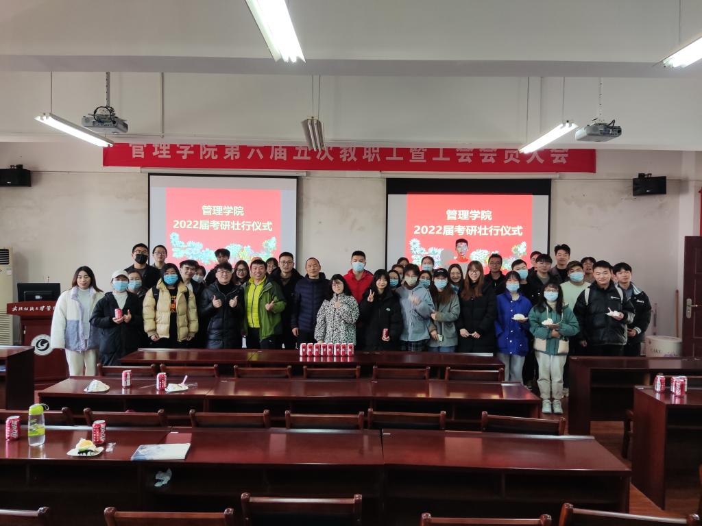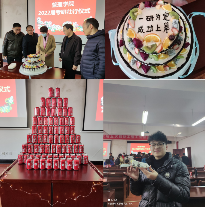 活动最后,学院为现场考研学子们发放了“创意”可乐和蛋糕,师生合影留念,表达了学院对考研学子们的殷切希望与美好祝福。此次壮行仪式,极大的鼓舞了同学们的士气和信心。相信管院考研学子怀揣全院师生的美好祝愿,在研究生考试中一战成硕。