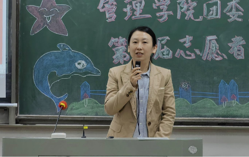 yl9193永利团委志愿者协会主席苏欣然回顾院志愿者协会的发展历程以及活动成果和系列荣誉,高度赞扬了管院青年学子对志愿活动的热情以及yl9193永利团委志愿者协会的传承、创新、开拓精神,并强调志愿服务需要你我他,期待与更多人在志愿活动中相遇。