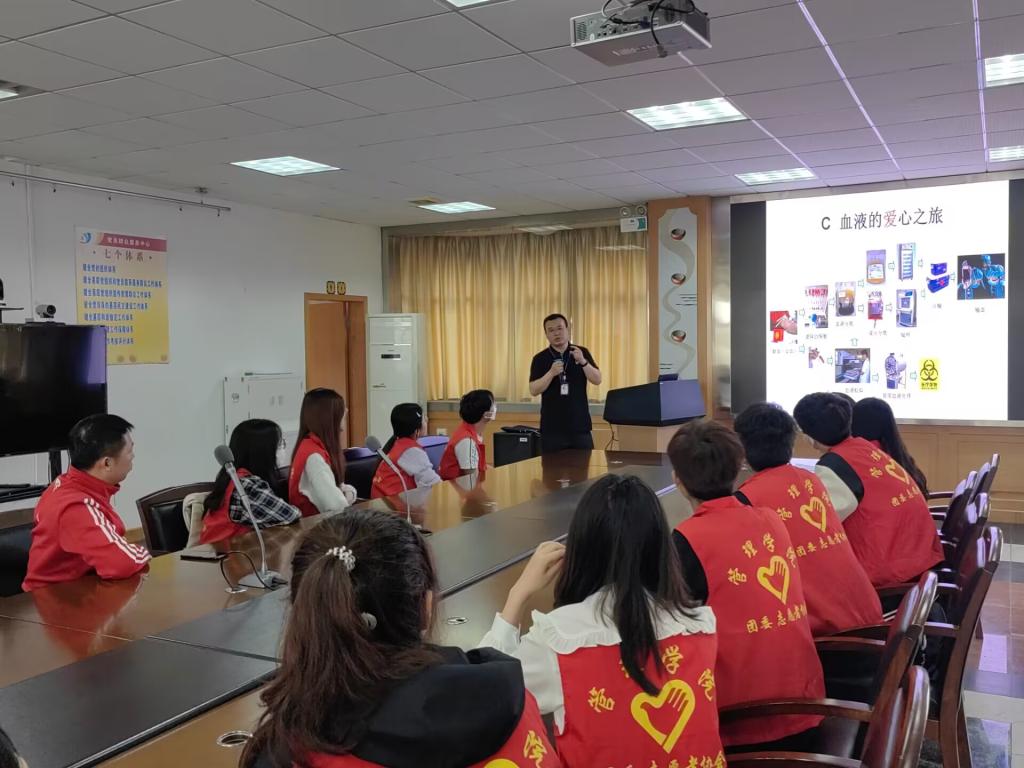 在血液中心人员的带领下,志愿者们还参观了血液中心成分科和供血科,实地了解血液制备、血液品种和血制品贮存等专业知识。参观中,顾军以实物展示的方式讲解了临床上常用的血制品:红细胞、血小板、血浆、冷沉淀等,丰富了同学们的血液知识,也点燃了同学们“传递爱心、拯救生命”的热情。