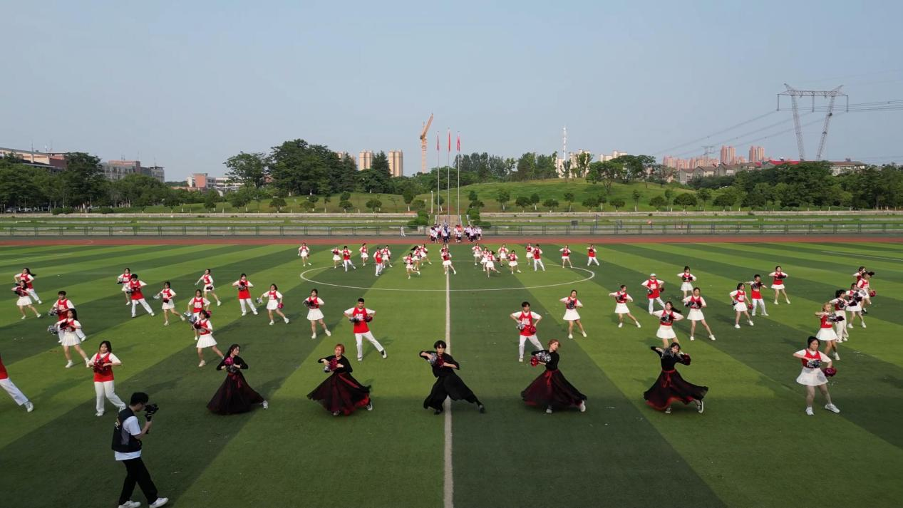 表演行至尾声,队伍首尾处四条“龙”向队伍中飞奔而来,伴随音乐的节奏,龙型飘带在空中飞舞,时而庄严威武,时而轻松活泼,彰显着管院青年学子汹涌澎湃的民族自豪感和自信心。随鼓声响起,管院学子有序退出场地。