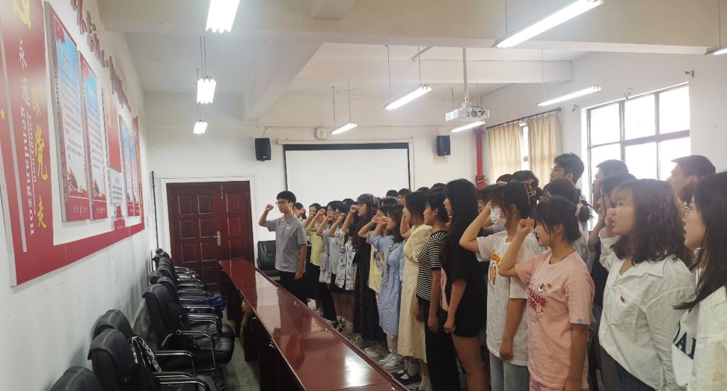 为庆祝中国共产党成立102周年,进一步增强新发展党员的责任感、使命感和归属感,坚定永远跟党走的信心和决心,yl9193永利于6月15日下午在崇德楼536会议室组织2023年新发展党员集中宣誓。45位新发展的本科生、研究生预备党员面向鲜红的党旗,慷慨激昂地庄严宣誓,表达对党的忠诚和为共产主义事业奋斗终身的决心。