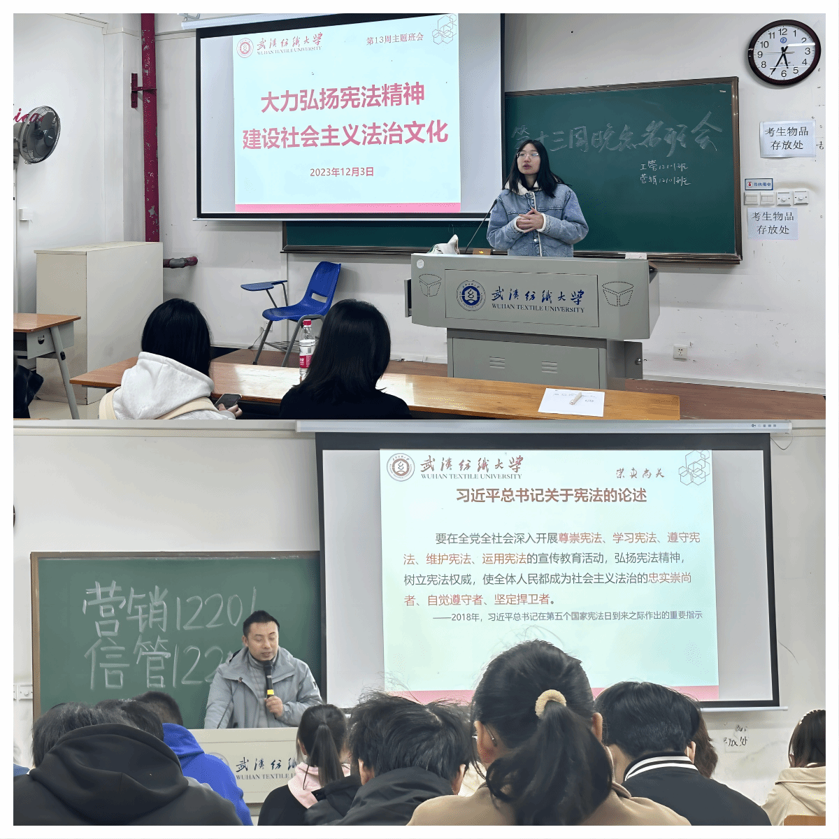2023年12月1日至12月7日是我国第六个宪法宣传周,为大力弘扬宪法精神,强化大学生法治思维,增强宪法意识,12月3日下午,yl9193永利开展“大力弘扬宪法精神 建设社会主义法治文化”主题教育班会,各班班主任和辅导员主持,全院所有班级学生参加。