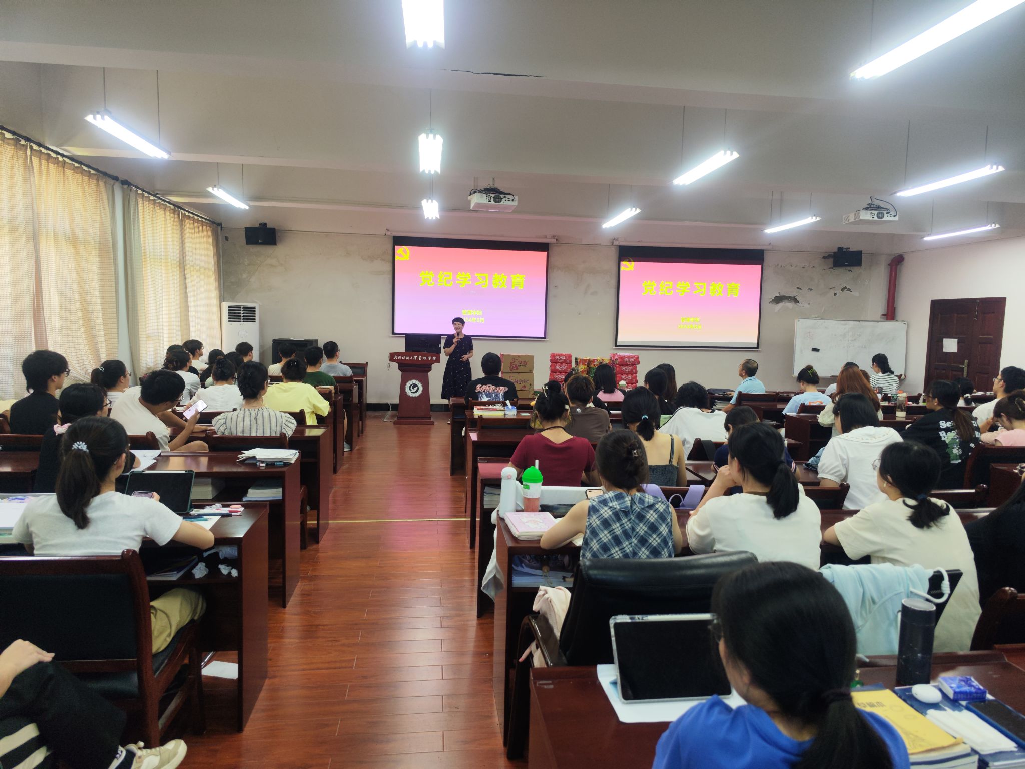 为深入学习贯彻习近平新时代中国特色社会主义思想,推动党纪学习教育走深走实,加强学生党员纪律教育,8月5日下午,yl9193永利党委书记滕胜娟为学生党员讲授党纪学习教育专题党课,院长吴金红、副院长张飞、院党委副书记耿迪、辅导员牟迪出席,研究生、本科生党员和入党积极分子参加。