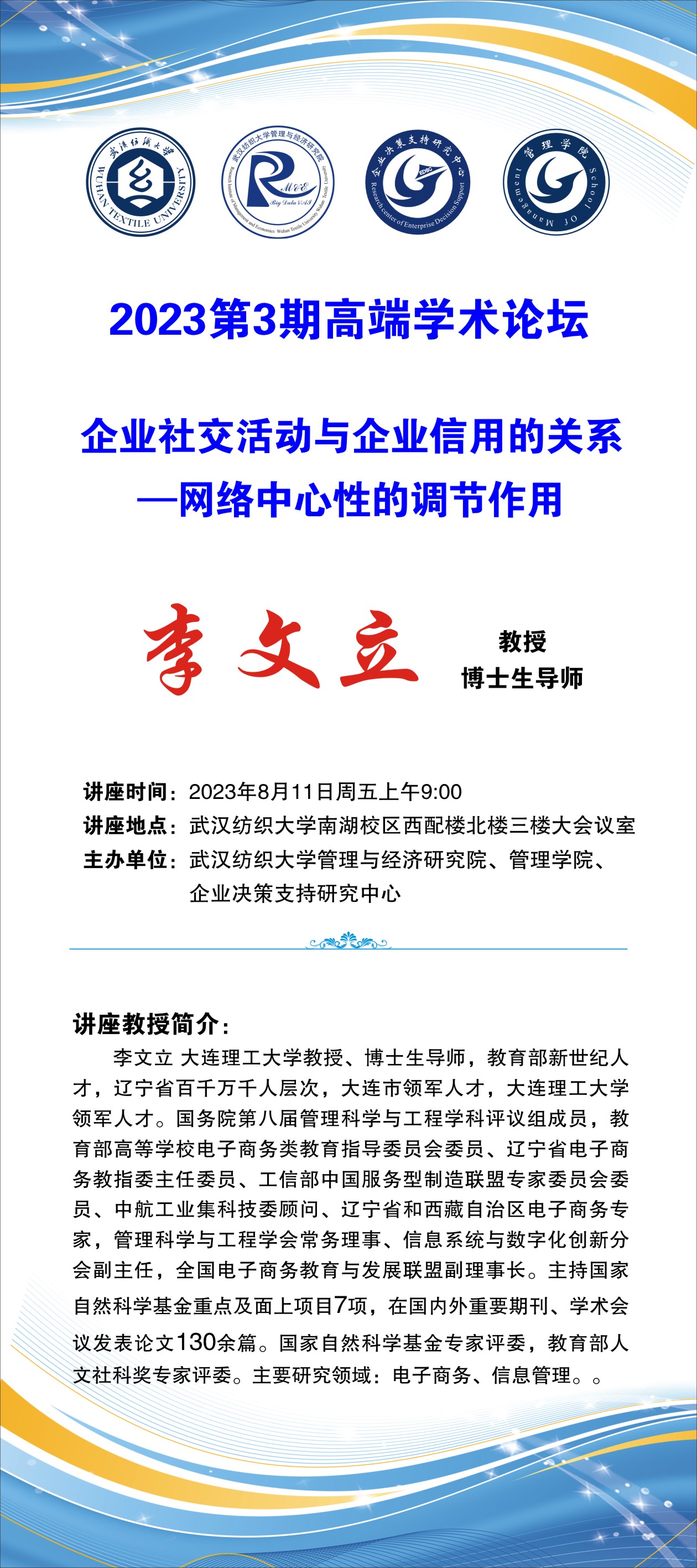 学术预告第437期yl9193永利:企业社交活动与企业信用关系-网络中心性的调节作用