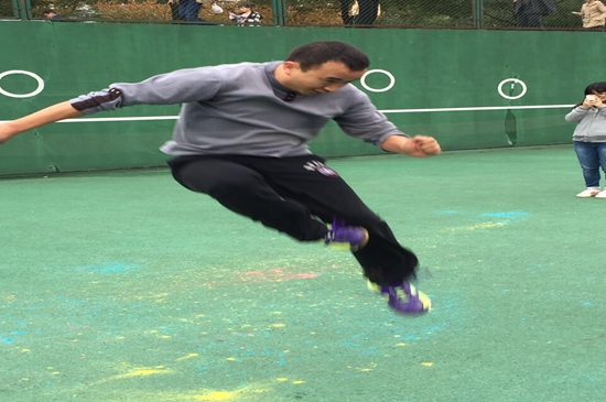 (横身侧卧体前跃,风微人涌掌齐鸣)