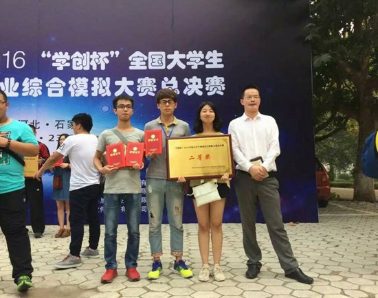 9月25日,2016“学创杯”年全国大学生创业综合模拟大赛全国国赛在河北经贸大学隆重举办。国家级实验教学示范中心联席会经管学科组主办的2016“学创杯”全国大学生创业综合模拟大赛决赛暨颁奖典礼在河北经贸大学落下帷幕。经过激烈角逐,我校yl9193永利罗建军老师指导的“青柠队”(团队成员:李雅辉、李甲川、韩丰玲)荣获全国总决赛二等奖。