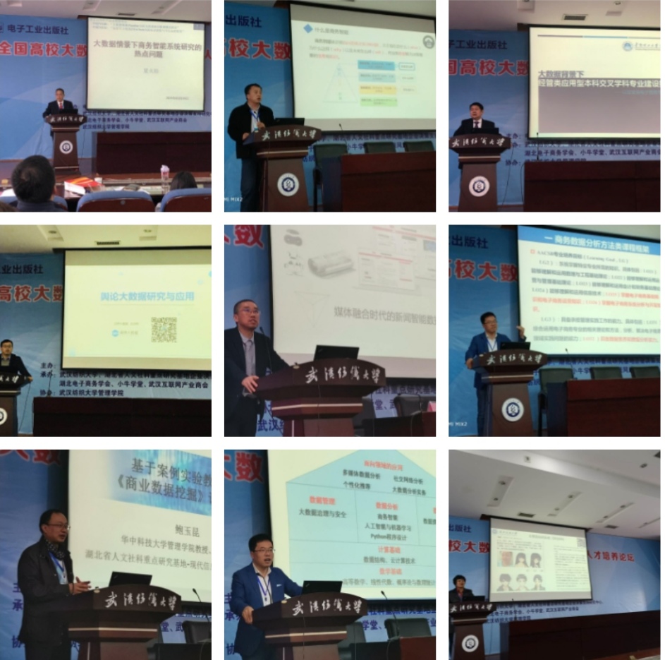 论坛期间,来自中国移动研究院、阿里巴巴集团、小牛学堂、武汉大学、华中科技大学、天津大学、电子工业出版社等各界专家们,带来了十余场精彩的专题报告,在产教合作、专业建设、教材等不同领域,就数据科学与大数据技术、电子商务、信息管理与信息系统等专业建设与人才培养创新等议题同与会代表一起进行了深入的探讨和交流。