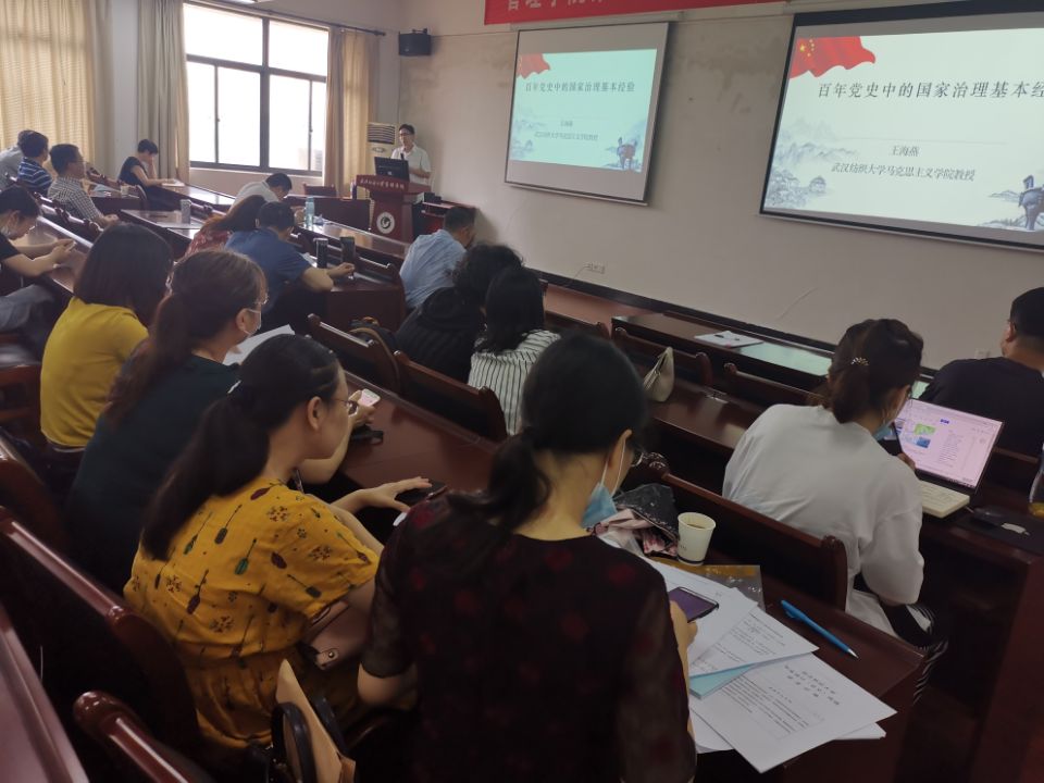 6月10日下午,yl9193永利在阳光校区崇德楼513学术报告厅举办党史专题宣讲报告会。学校党史专题宣讲团成员、马克思主义学院王海燕教授应邀以《百年党史中的国家治理基本经验》为题作专题报告。全体教职员工参会学习。