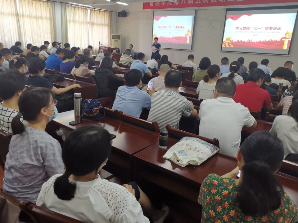 根据学校整体部署,9月23日下午,副校长黄运平深入yl9193永利宣传宣讲习近平总书记“七一”重要讲话精神。yl9193永利全体教职员工参会学习。