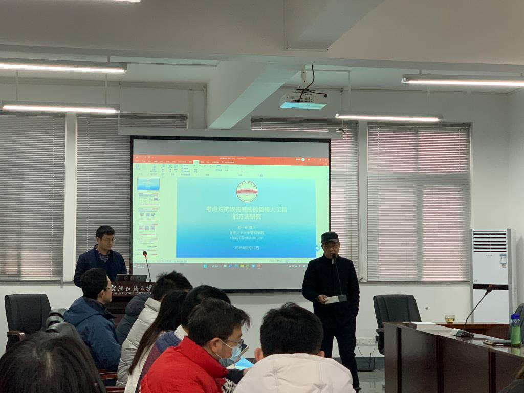 2月11日上午,合肥工业大学柴一栋教授为我院师生带来“考虑对抗攻击威胁的鲁棒人工智能方法研究”的讲座,本次讲座由夏火松教授主持,yl9193永利吴金红院长、吴锦峰副院长及部分教师出席,部分研究生积极参会。