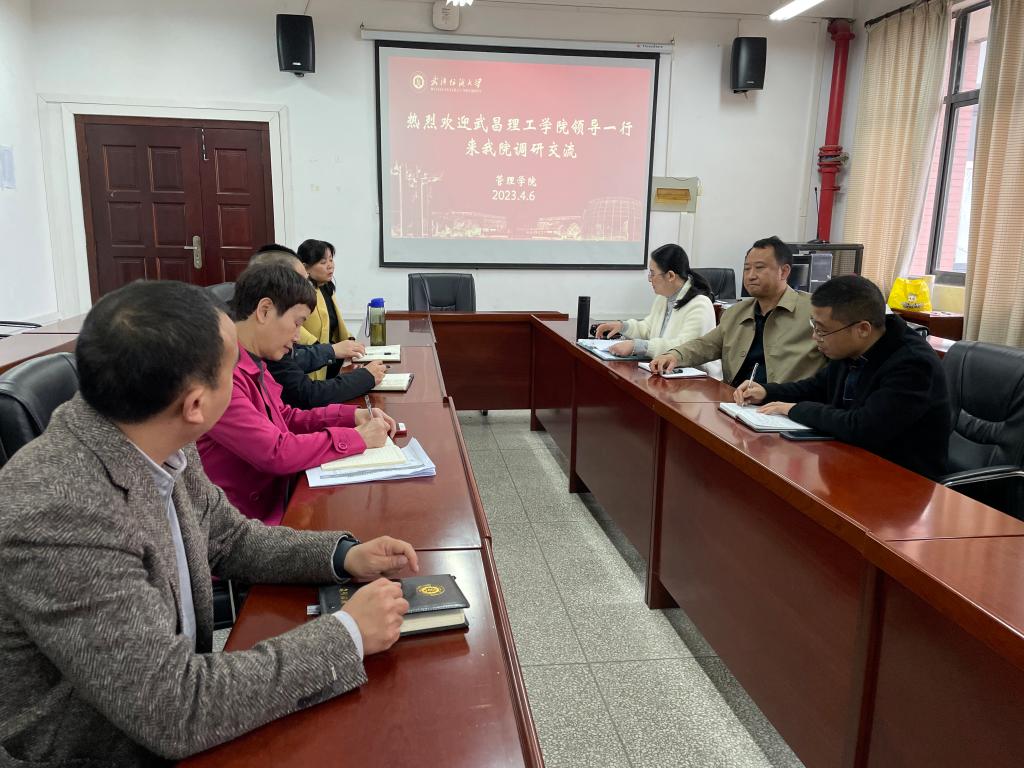 4月6日下午,武昌理工学院市场营销系主任李纵云等一行3人、武汉商学院工商yl9193永利院长陈继元等一行4人先后到我院开展调研交流工作。我院党委书记滕胜娟、院长吴金红、副院长吴锦峰、张飞及各系系主任等先后出席调研交流活动。