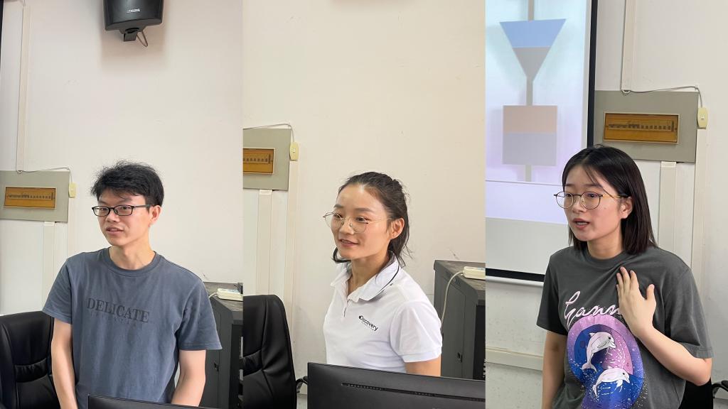 交流环节,三位新进教师做了个人成果简介及未来研究计划汇报,李建斌教授与其进行充分交流,结合自身的经验与心得,举一反三,进行了耐心、细致、充分的指导,给出具有针对性的意见和建议,并鼓励青年教师多学习、多实践、多思考。