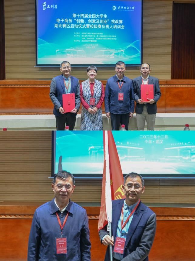 会上,李琪教授和彭丽芳教授颁发了第十四届三创赛湖北赛区选拔赛组委会主任及秘书长聘书并展示湖北赛区赛旗。毛志斌教授致辞并宣布第十四届三创赛湖北赛区比赛启动。