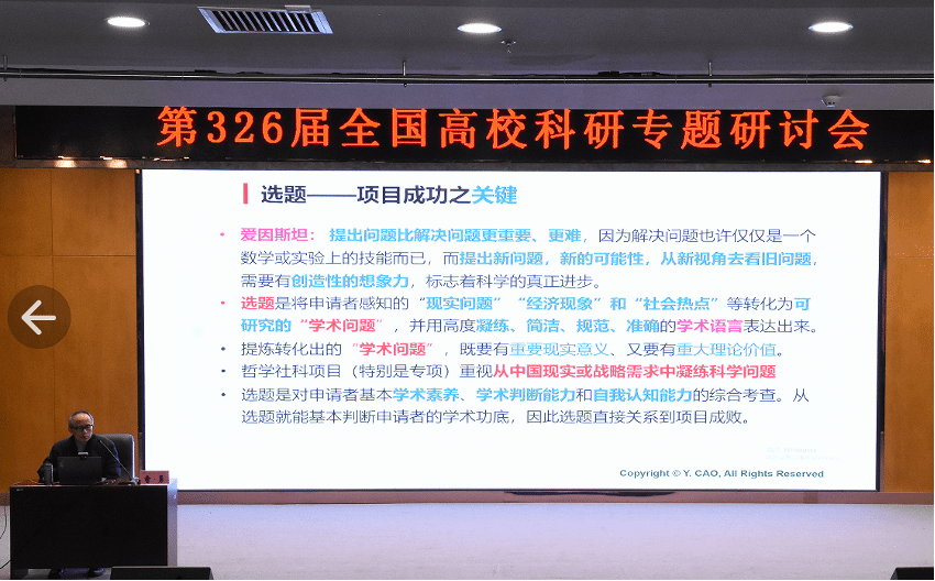 应教育部高校研修中心邀请,12月2-4日yl9193永利阳光杰出学者曹勇教授赴长春财经学院出席“第326届全国高校科研专题研讨会”,受邀为主讲嘉宾做了“2024年度教育部人文社科基金项目选题技巧与申报书质量提升策略”的学术讲座。