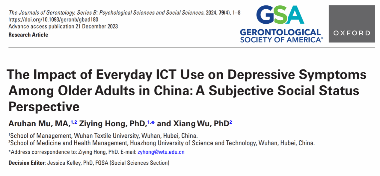 3 | 洪紫映 | The Impact of Everyday ICT Use on Depressive Symptoms Among Older Adults in China: A Subjective Social Status Perspective | The Journals of Gerontology: Series B,JCR SSCI一区 |