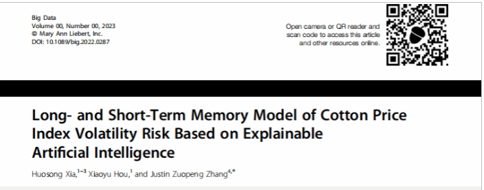 6 | 夏火松 | Long- and Short-Term Memory Model of Cotton Price Index Volatility Risk Based on Explainable Artificial Intelligence DOI:https://doi.org/10.1089/big.2022.0287 | Big Data,JCR分区Q1 |