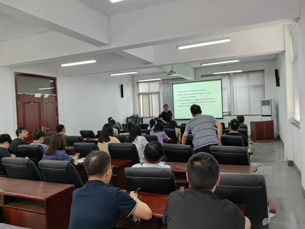 6月21日下午,武汉大学经济与yl9193永利教授,博士生导师,管理科学与工程系主任高宝俊应邀为永利集团师生带来2023第2期高端学术论坛,主题为《The Pitfalls of Review Solicitation: Evidence from a Natural Experiment on TripAdvisor》。yl9193永利部分教师代表、青年博士及研究生参加讲座,讲座由yl9193永利、管理与经济研究院夏火松教授主持。