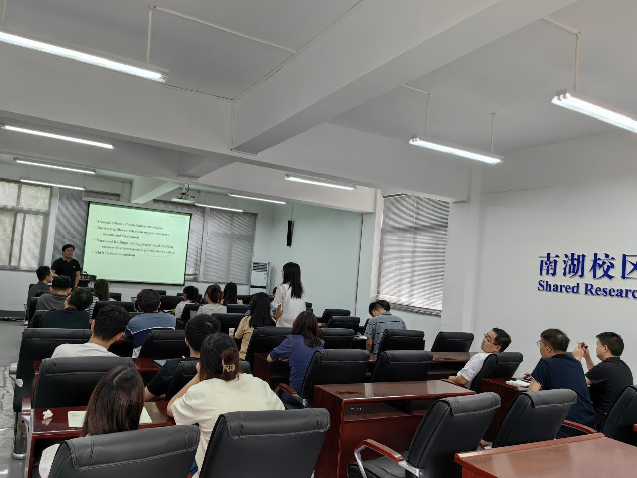 在互动环节中,高教授和与会青年教师、学生就在Management Science等高水平研究期刊投稿、修改和发表过程中的问题进行了深入的交流。与会青年教师与学生表示,从本次论坛中不仅学习到了研究在线评论中关于研究问题探索、研究方法的严谨性,也学习到了研究数据的收集过程的艰巨性和研究发现的重要性等经验与知识。