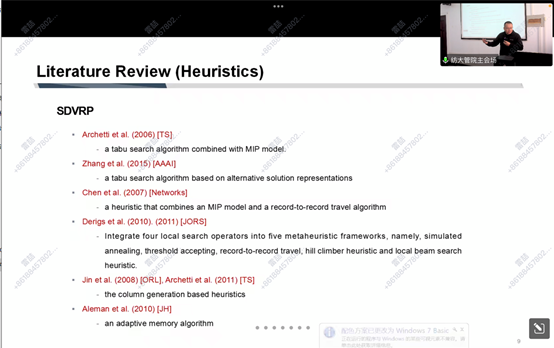 The three lectures in the afternoon were equally wonderful, which were hosted by Professor Dai Bin from Wuhan University and Dr. Cai Xueyuan from the Logistics Management Department of Wuhan Textile University. First of all, Professor Qin Hu of Huazhong University of Science and Technology introduced his research in the field of intelligent optimization of logistics distribution routes, entitled "Research on the optimization of demand separable vehicle routes". This study relaxed the traditional vehicle routing optimization problem assumption that each customer can only be visited by one vehicle once, and focused on the introduction of heuristic algorithm and accurate algorithm for solving the demand splitting vehicle routing optimization problem.