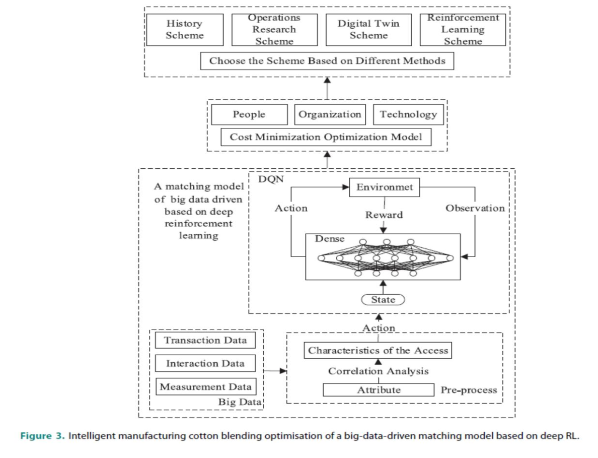 Huosong Xia, Yuan Wang, Sajjad Jasimuddin, Justin Zuopeng Zhang & Andrew Thomas (2022) A big-data-driven matching model based on deep reinforcement learning for cotton blending, International Journal of Production Research, DOI: 10.1080/00207543.2022.2153942