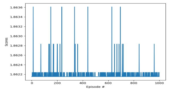 研究实验结果:对数据进行1000次迭代,实验结果如图所示。在每次试验结束时,给出一个最佳的棉花混纺方案。但在迭代的过程中,也会出现一些突出的突出现象。但在迭代过程中,每两支纱线所需的棉花成本在1.86225 - 1.86275之间,变化不大。说明在177种混棉方案中,以成本最低的混棉方案最为合适 60支纱线不改变质量可以找到的最好的结果。