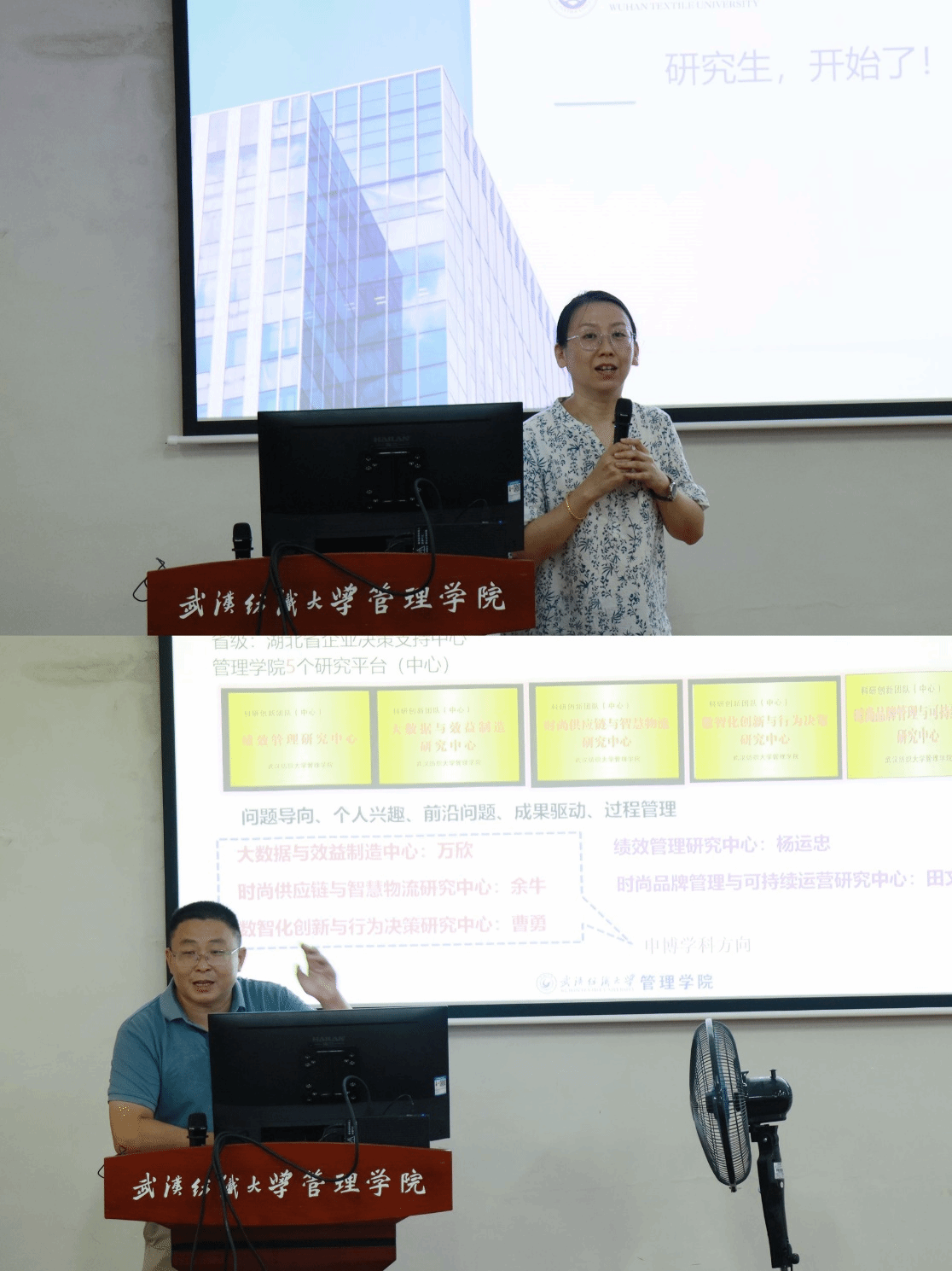 接着,吴锦峰详细介绍了学院的学科建设、专业硕士与学术硕士的培养情况,以及学院在科研成果上的斐然成绩。耿迪温馨提醒新生调整作息,加强安全意识,做好个人职业规划,合理安排研究生三年的学习生活,并送上美好祝福。崔韦向新生们详细阐述了研究生课程设置及培养计划等相关内容。老师们的话语中流露出对学术的深厚热爱与执着追求,以及对新生们的深厚期望,激发了在座每位同学对即将到来的研究生生活的憧憬与向往。