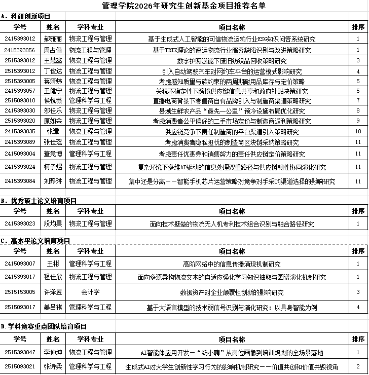 根据永利集团2026年研究生创新基金项目申报要求,学院开展了相关评审工作。经学生个人申请,学院评审,yl9193永利2026年研究生创新基金项目拟推荐名单如下: