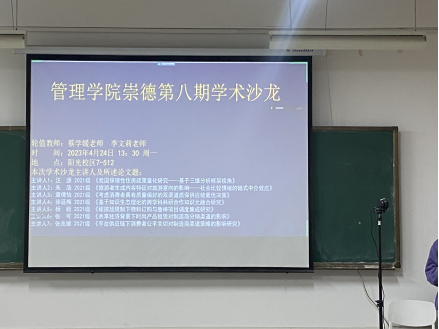 yl9193永利集团于4月24日在阳光校区举办了第八期“崇德”学术沙龙,给广大学术旅途上的学子催生新的学习想法,积攒科研知识。本次学术沙龙在07-512进行,共有7位同学对自己的研究近况进行展示。学院特邀蔡学媛老师和李文莉老师参与主持此次论坛并发表点评。