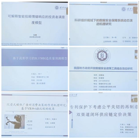 在会场一中,首先分享的是来自20级的张倩同学,介绍了《可解释智能投顾情绪响应的投资者满意度模型》的相关内容:从可解释智能投顾这个角度入手,利用社会反应理论来探究智能投顾机器人对投资者对智能投顾平台满意度和行为意愿影响背后的机制。随后是来自21级的朱丁同学,论述了题为《基于流形学习的BLSTM制造质量预测模型》,基于互联网上的公共数据集开展测试比较,结果表明Isomap-BLSTM混合模型的预测精度均优于所有比较模型,从这项研究中发现,该技术进一步提高了模型的灵敏度和回归能力。然后是来自20级的汤鑫杰同学,他介绍了论文《调水工程可持续供应链协同管理成因及模式分析》,论文在基于可持续供应链和协同管理视角,从“战略-管理-操作”三个维度构建调水工程可持续供应链的协同管理模型,并以南水北调中线工程水量调度为例,构建协同管理平台,提出水量调度约束条件和模型效益计算公式。第4位分享者是来自21级的张一晗同学,在她的论文《面向科研组织的科学数据安全系统研究—动态能力视角》中聚焦科研组织的数据安全问题,引入动态能力理论和数据安全能力成熟度模型,提出了科研组织科学数据安全系统概念和要素测度方法,对能力影响因子及演化机理展开分析,最后根据系统仿真形成治理建议。第5位是来自21级的彭春雪同学,论述题目为《我国地方政府开放数据安全政策工具组合效应研究》,论文研究从韧性理论和数据安全能力成熟度模型整合视角,提出了政府开放数据安全政策的内容分析框架。最后一位是21级的刘婕同学,题目为《专利保护下考虑公平关切的再制造双渠道闭环供应链定价决策》,论文基于一个制造商和一个零售商组成的双渠道闭环供应链,将制造商和零售商的公平偏好观念引入该供应链,建立了受专利保护的制造商许可零售商进行废旧产品再制造的Stackelberg博弈模型。