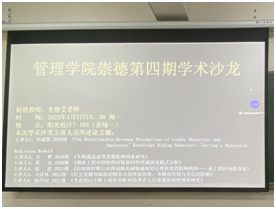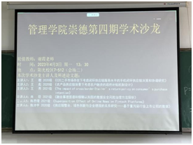 学术交流在高校的人才培养、学院的建设、科研水平的提高以及可持续发展等方面发挥着其重要的作用。yl9193永利集团于4月3日在阳光校区举办了第五期“崇德”学术沙龙,本次学术沙龙分成两个会场同时进行,各有6位同学对自己的研究近况进行展示。学院特邀李静雯老师和谢霞老师参与主持此次论坛并发表点评。