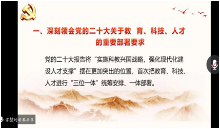 会议伊始,组织委员李小庆同志带领参会人员学习了中国共产党章程第二章第十条相关内容。随后宣传委员雷喆同志讲解了本期主题党日活动的主要内容。本次学习让大家进一步深刻学习领会党的二十大报告关于教育、科技、人才以及关于“坚定不移全面从严治党,深入推进新时代党的建设的伟大工程”的重要部署要求。